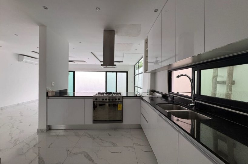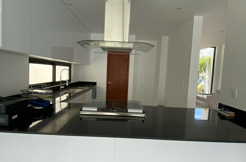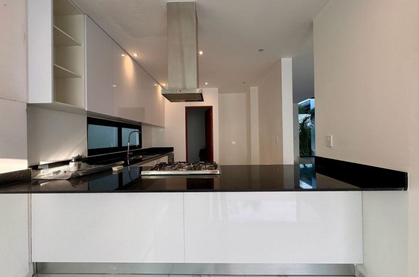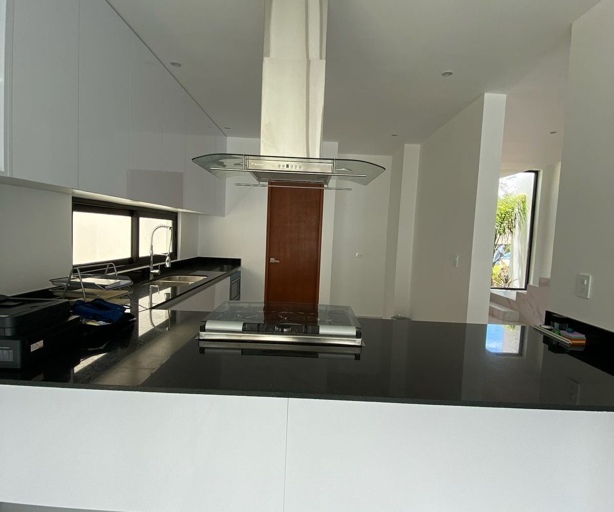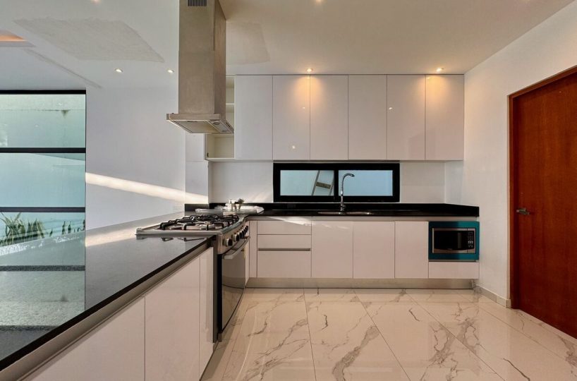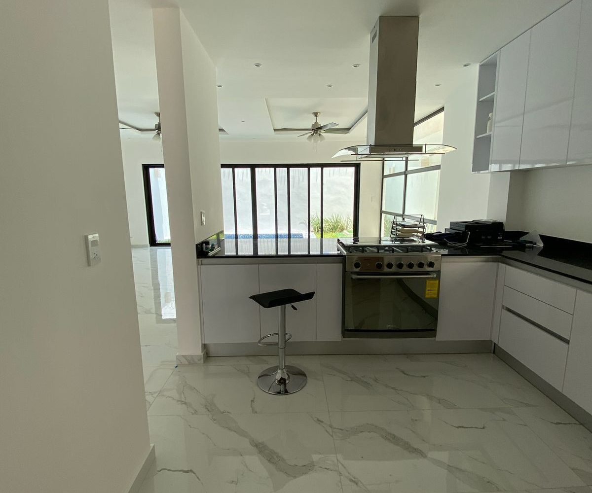 Cocina integral equipada con acabados modernos.