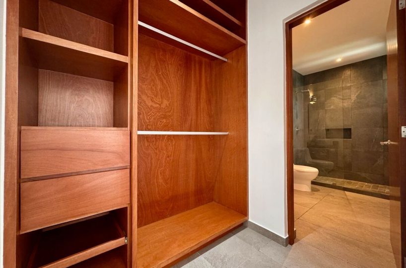 Primer Nivel: Recámara principal con vestidor y baño completo, recámara secundaria con vestidor y baño.